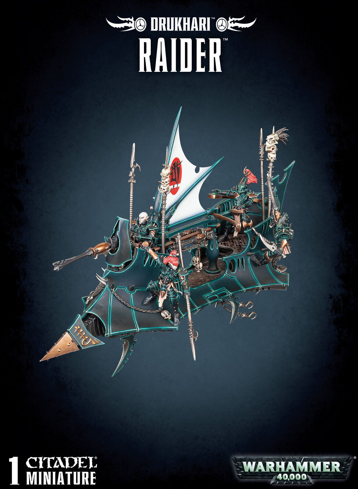 This box set contains one multi-part plastic Raider. This 103-piece set includes two weapon options - a dark lance and disintegrator cannon. Model supplied with a large flying base.