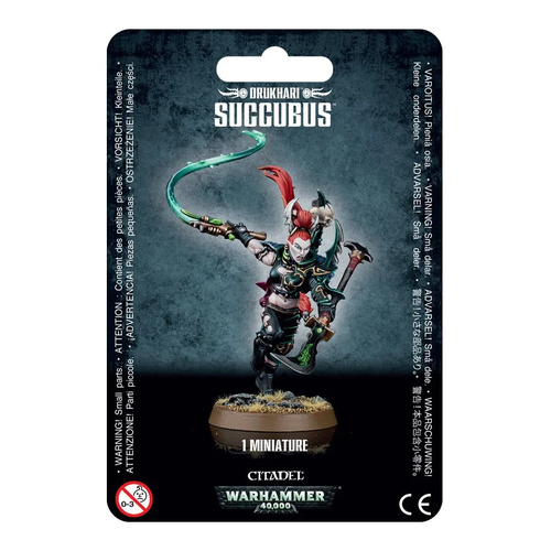 This 10-piece plastic kit makes one Succubus equipped with an agoniser and archite glaive. The Succubus carries a trophy rack which demonstrates her prowess in battle, and is sculpted with cables in her neck which deliver her much needed combat drugs.