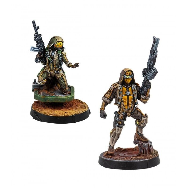 This set contains all the necessary parts to build two Mukhtar Active Response Units of the Haqqislam faction for Infinity, as well as matching bases.