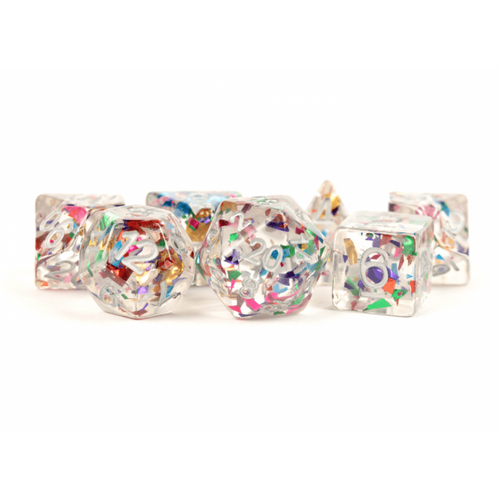 MDG specialty resin dice sets are a unique addition to any collection! Each full-sized, 16mm set comes with 7 dice (d4, d6, d8, d10, d10% (00-90), d12, and d20).