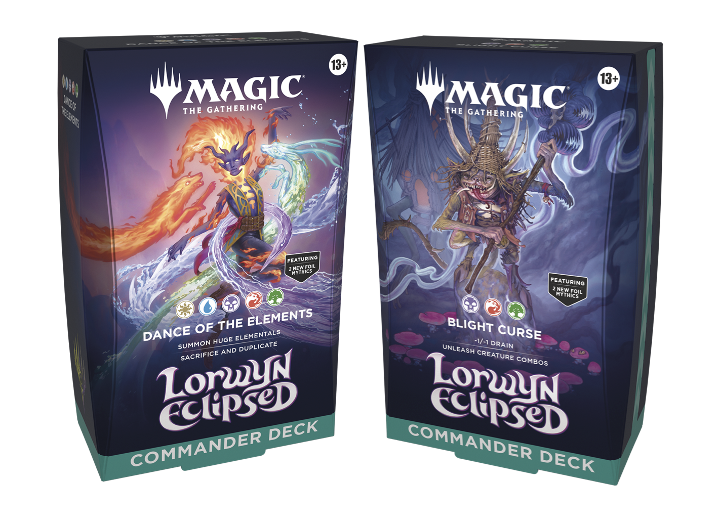 Commander decks are ready to play right out of the box and contain everything you need to play Magic's most popular multiplayer format. Lorwyn Eclipsed features two different Commander deck versions.
