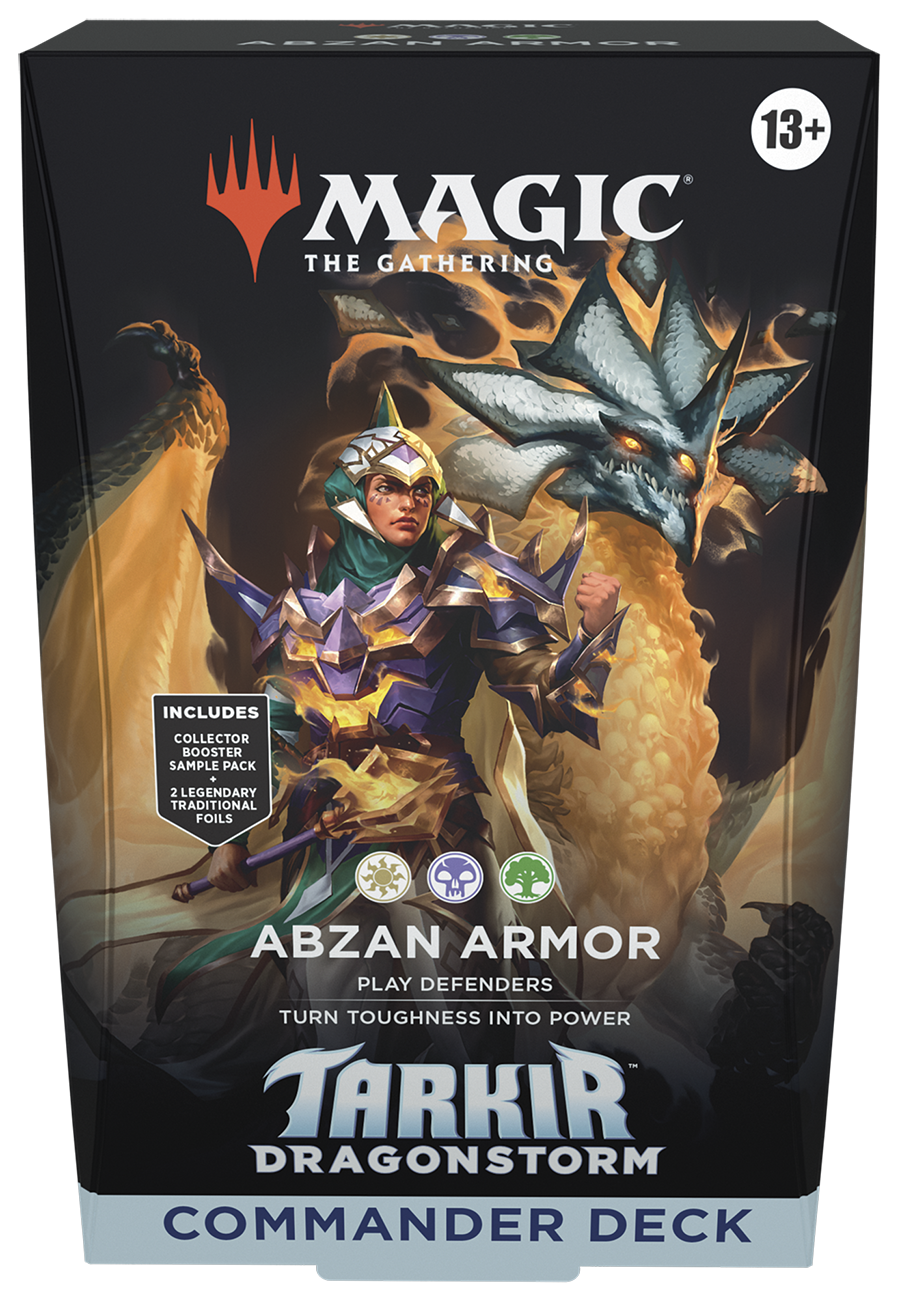 Choose your clan and battle your friends with Commander decks each featuring a legendary clan leader of Tarkir and a Spirit Dragon. Commander decks are ready to play right out of the box and contain everything you need to play Magic’s most popular multiplayer format.