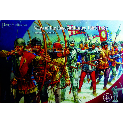 WR 1 Plastic Wars of the Roses Infantry 1450-1500, bows and bills (40 figures). You can build up to 30 bowmen, up to 18 billmen and includes 4 fully armoured command.