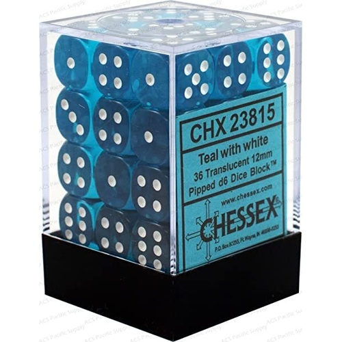 Founded in 1987, Chessex has a long history of manufacturing gaming accessories with an emphasis on dice. Block of 36 dice. 12mm sides.