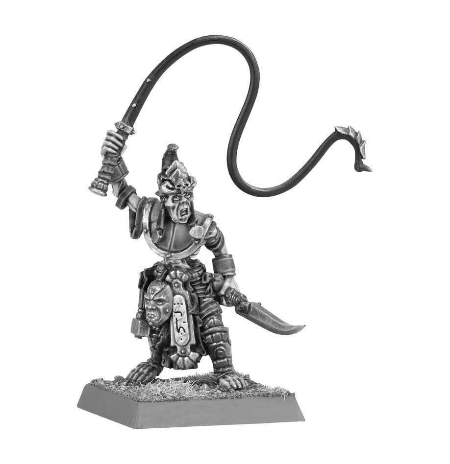 This multipart metal kit builds one Necrotect, an undead taskmaster for the Tomb Kings of Khemri. This stern architect goes to war armed with a barbed whip, along with a curved blade. They're clad in the finery of a favoured servant, with architectural tools and a deathmask hung at their waist, and are prepared to push their minions to fits of vengeful wrath.