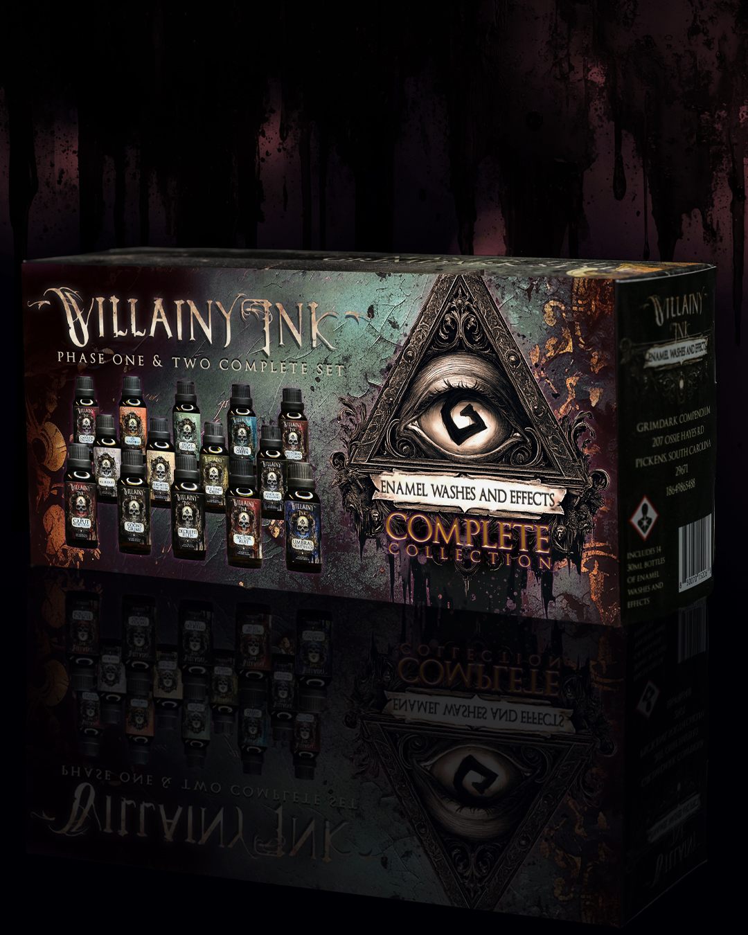 Master the grimdark style with Villainy Ink Enamels. The Villainy Ink Complete Collection introduces seven all-new enamel washes and includes the seven original washes, each crafted to expand your control over grimdark painting techniques on your wargaming miniatures.